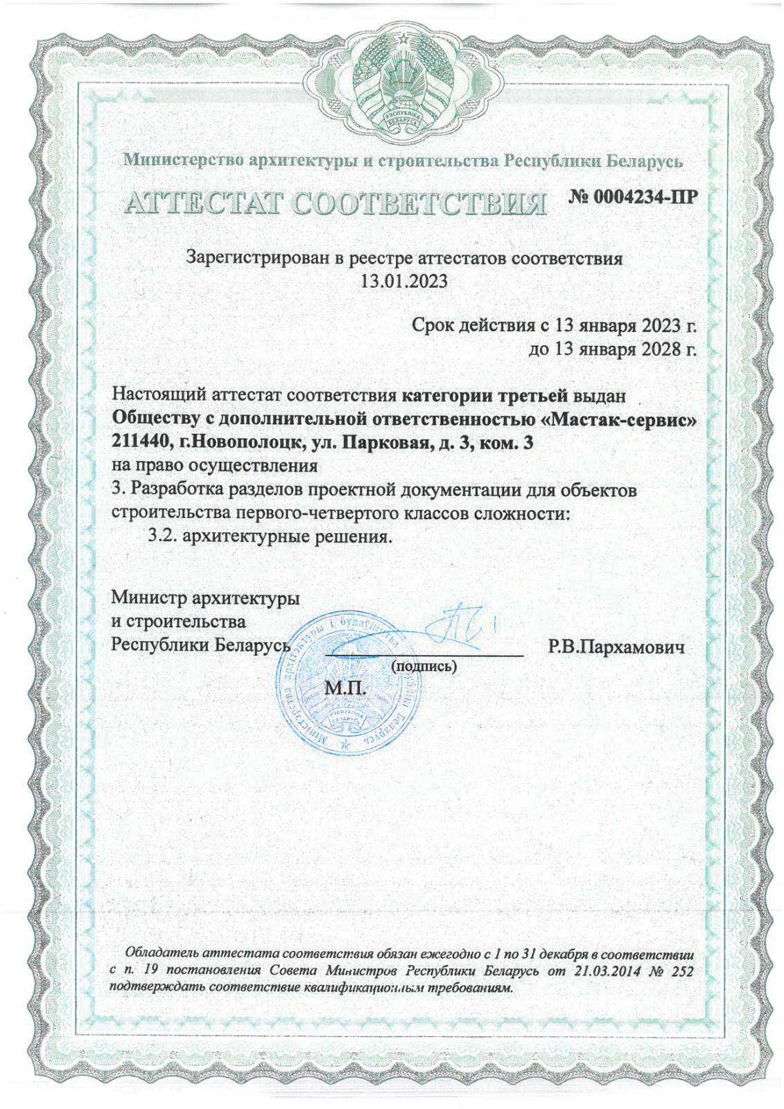 Аттестат соответствия