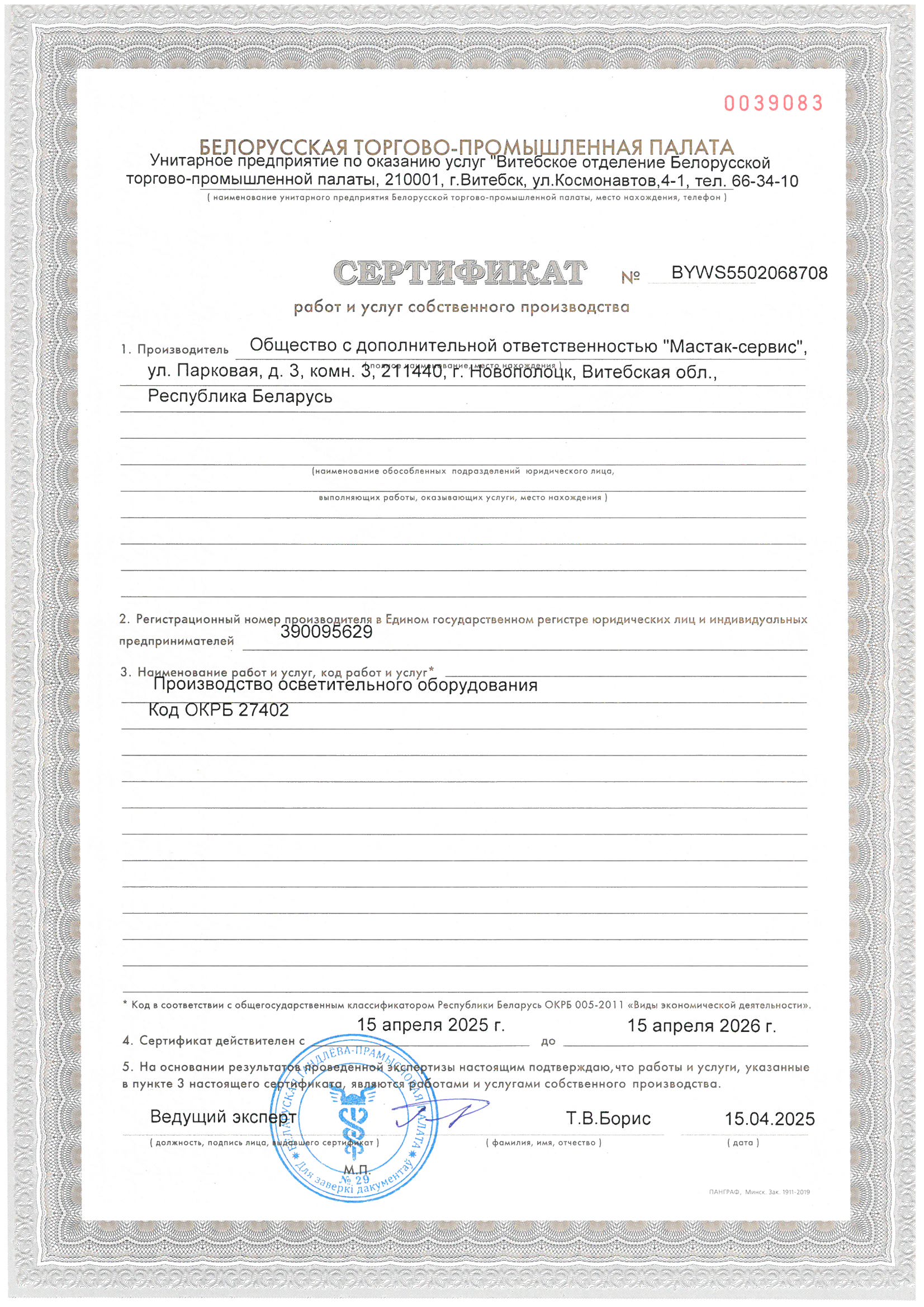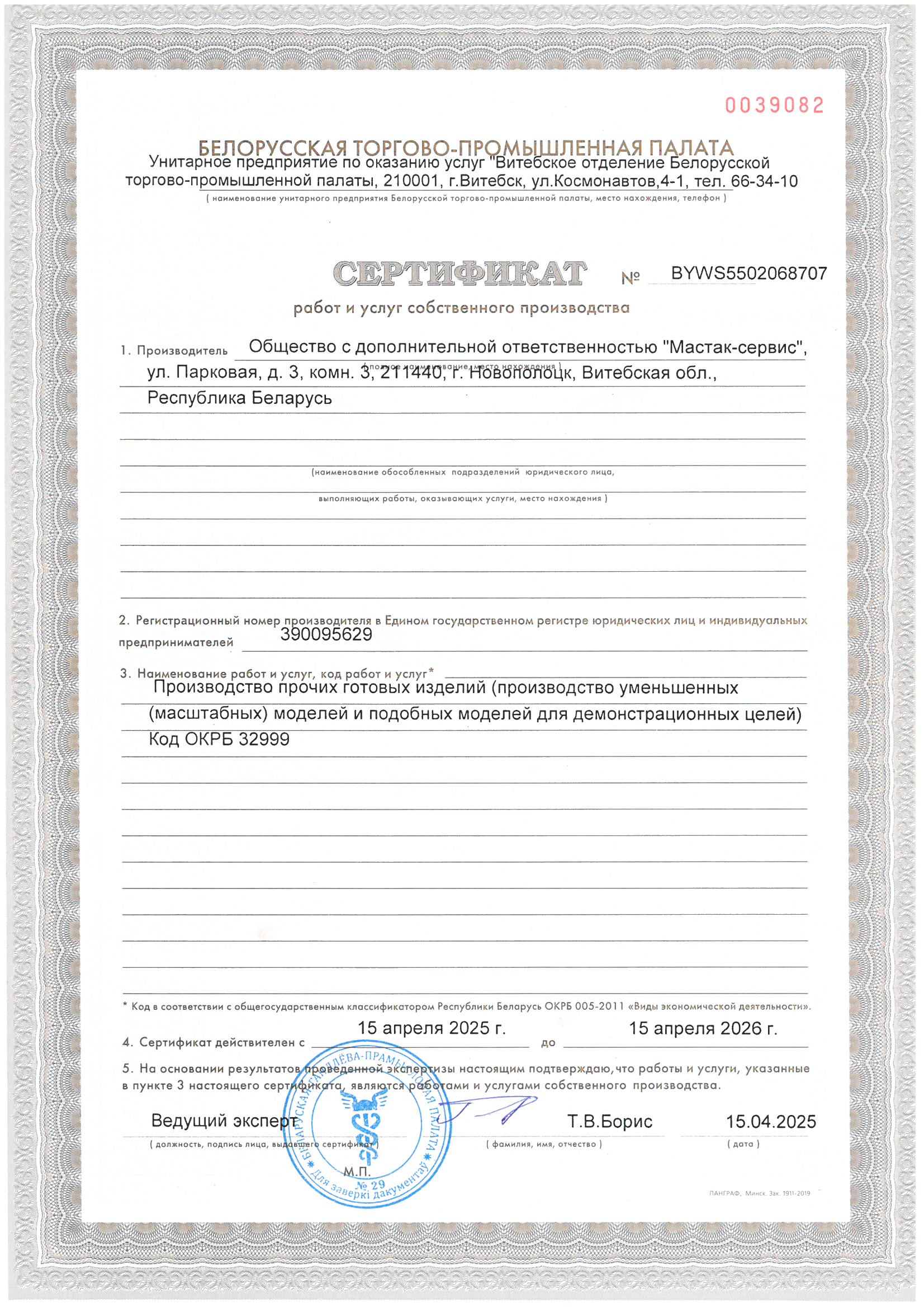 Сертификат на производство прочих готовых изделий