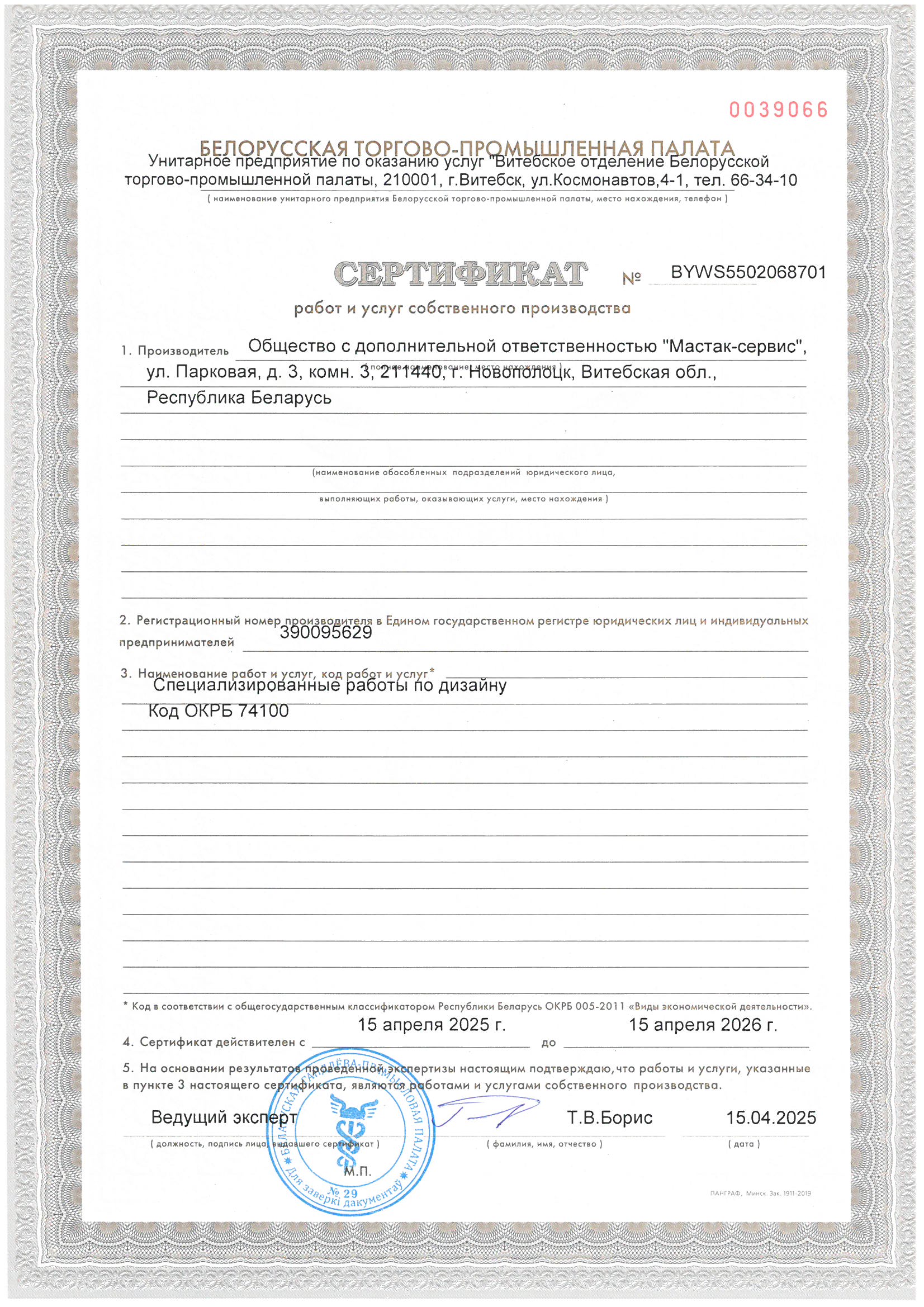Сертификат на оказание услуг по дизайну