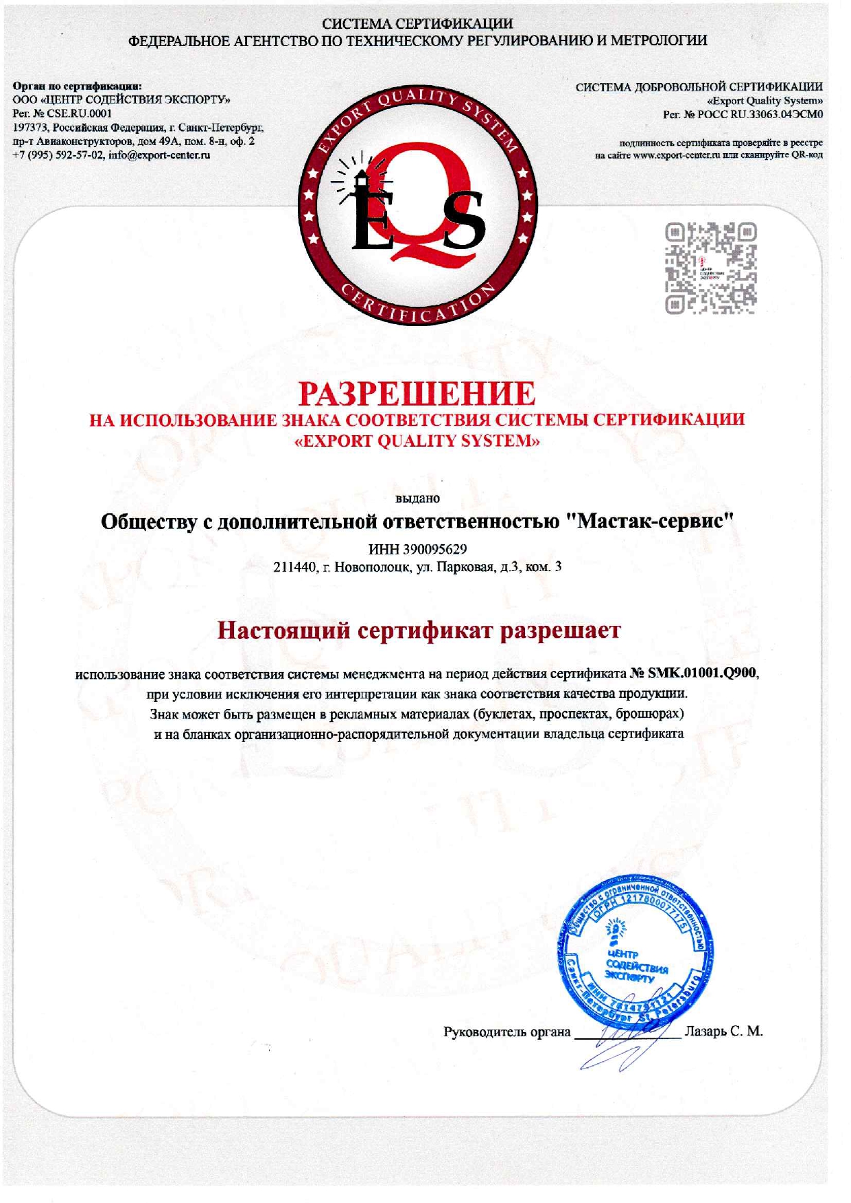 Сертификат Росстандарт